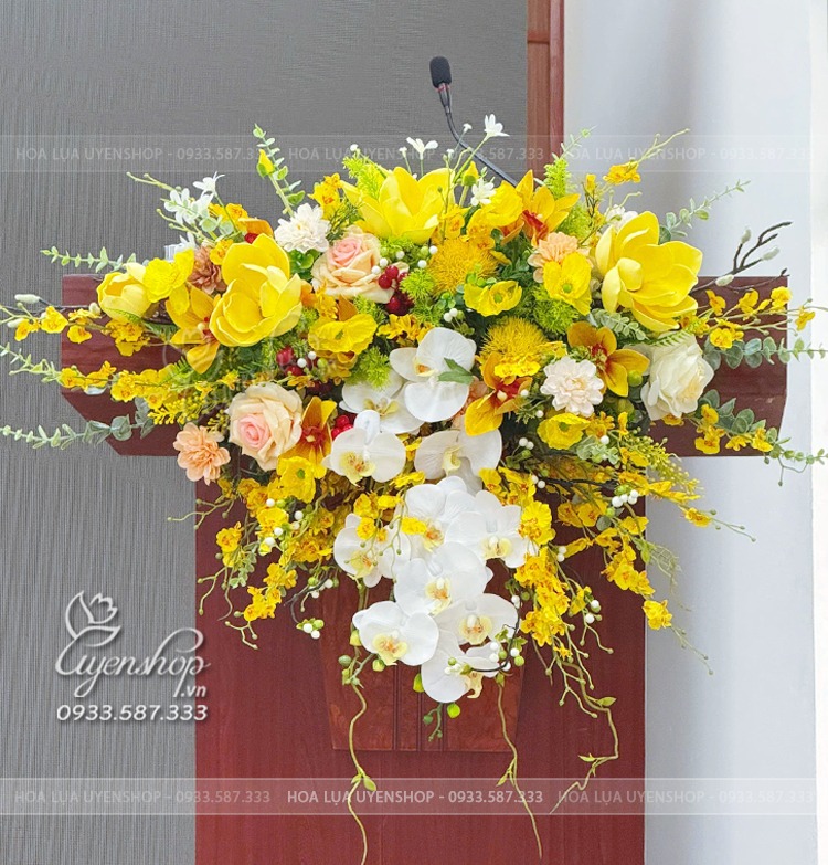 Hoa Trang Trí Bục Phát Biểu To Tone Vàng (TU18591) 0 đ -