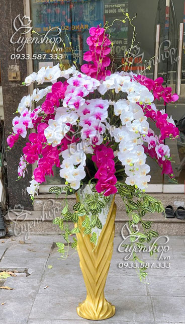 Bình Lan hồ điệp dành cho khách hàng trang trí ở Đại Sảnh Khách Sạn hay căn phòng khách rộng, quà tặng Khai Trương… Bình hoa kết hợp giữa màu trắng và tím đem lại vẻ đẹp rất sang trọng và thanh lịch.