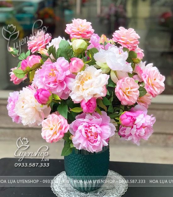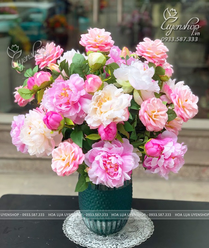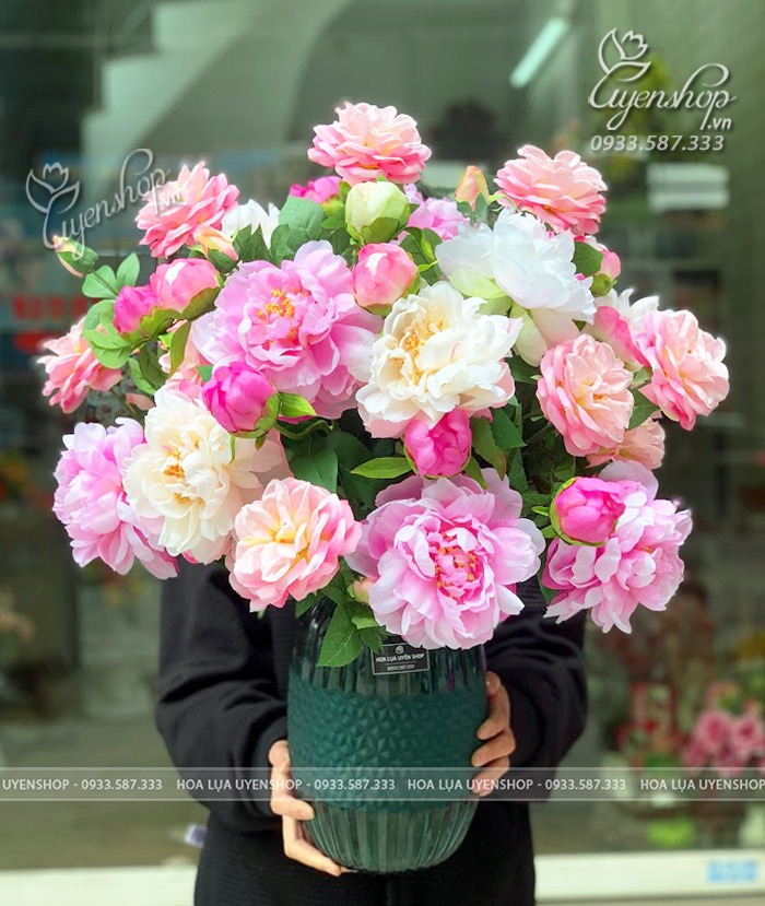 Mẫu đơn tượng trưng cho phú quý, hạnh phúc và viên mãn, rất phù hợp đặt tại phòng khách, bàn tiếp khách, không gian gia đình hoặc làm quà tặng ý nghĩa. Hoa lụa cao cấp giúp chậu hoa luôn giữ được vẻ đẹp lâu dài, không cần chăm sóc.