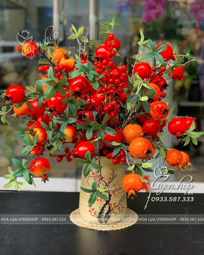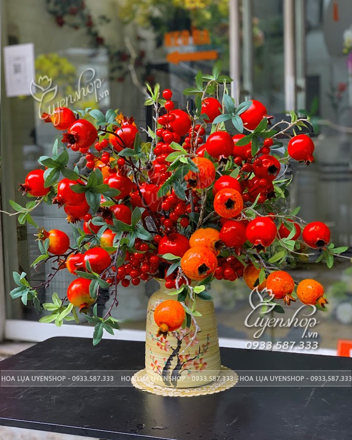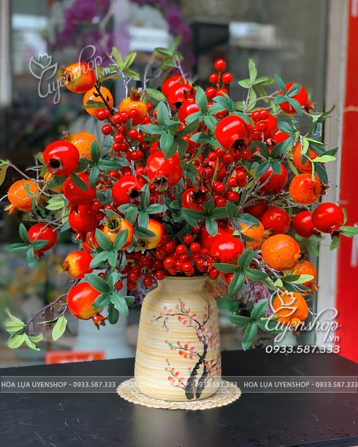 Bạn có thể đặt bình Lựu ở phòng khách, trên kệ tivi hay kệ bàn trà, bàn ăn quả Lựu đỏ sẽ mang đến nhiều niềm vui và tạo không gian ấm cúng.