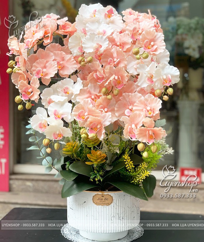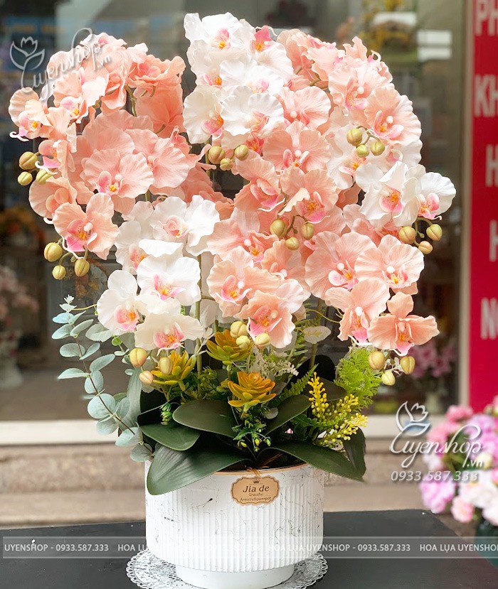 Chậu lan hồ điệp cao su cao cấp là sản phẩm trang trí tinh tế, kết hợp giữa vẻ đẹp tự nhiên của hoa lan và chất liệu cao su mềm mại, bền bỉ. Hoa được mô phỏng giống như hoa thật, mang đến sự sang trọng, tinh tế cho không gian sống hoặc làm việc.