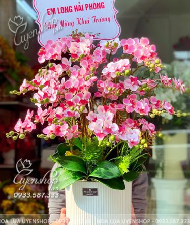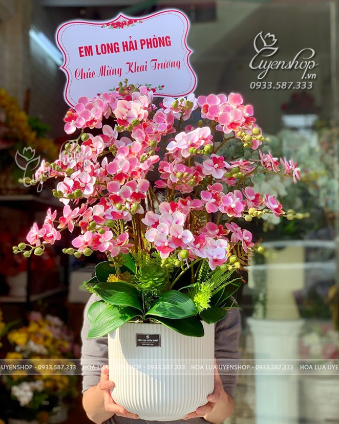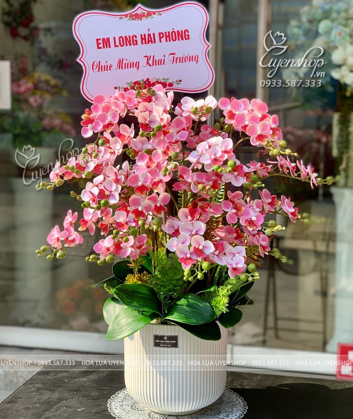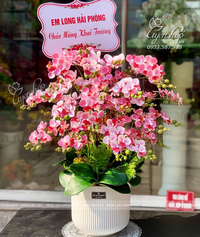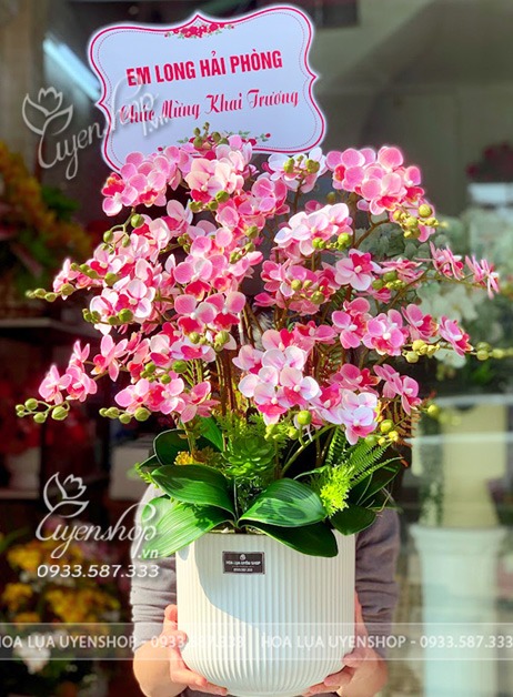Sắc hồng tượng trưng cho sự khởi đầu thuận lợi, niềm vui và sự gắn kết, rất thích hợp làm quà chúc mừng khai trương, tân gia, kỷ niệm. Khi đặt tại phòng khách, quầy lễ tân hay cửa hàng, chậu lan giúp không gian trở nên tươi sáng và thân thiện hơn.