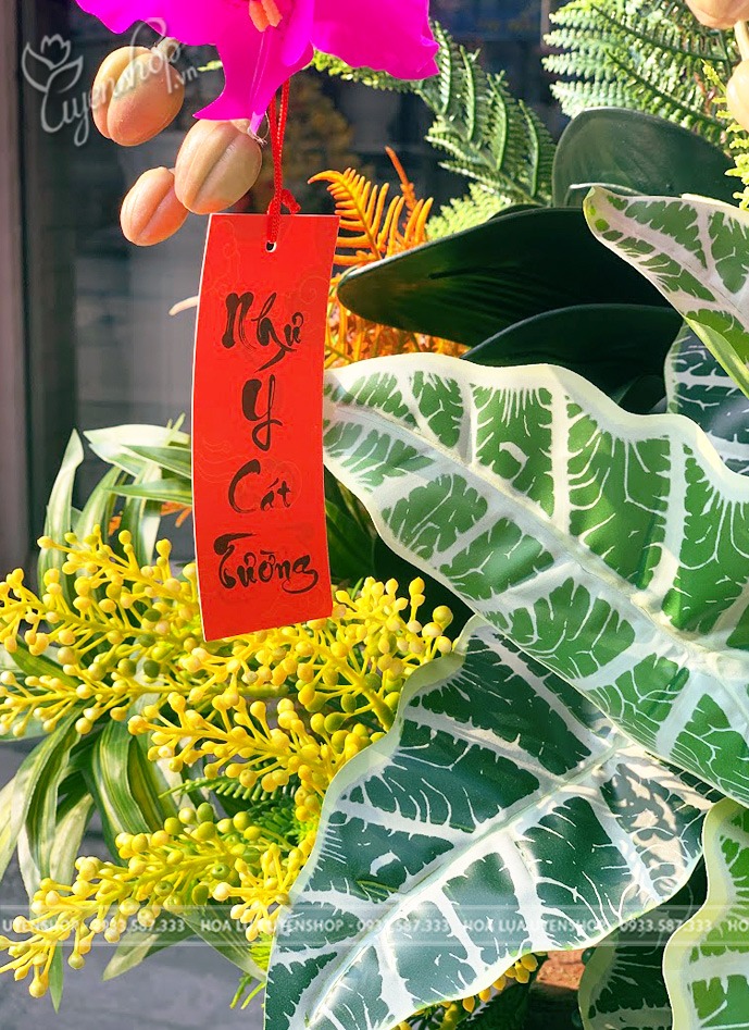 Các tầng hoa được bố trí khéo léo, nở đều và dày, xen kẽ lá và tiểu cảnh xanh, mang lại chiều sâu và sự bề thế cho không gian. Sản phẩm đặc biệt phù hợp trưng bày tại đại sảnh, showroom, khách sạn, biệt thự hoặc làm điểm nhấn phong thủy cao cấp.