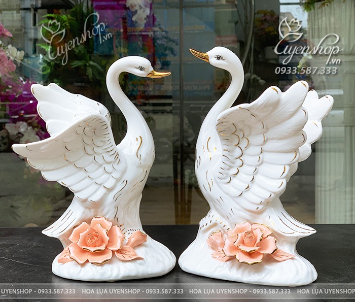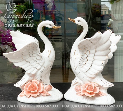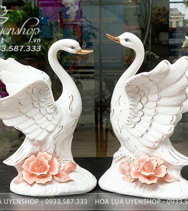 Bộ thiên nga cao 22cm, xòe rộng 26cm.