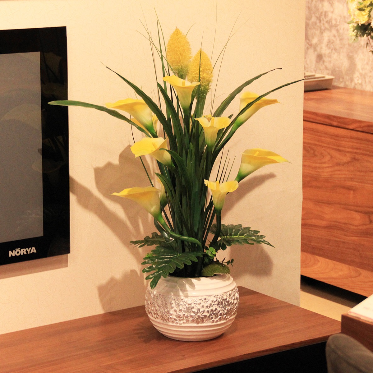 Một trong những thách thức lớn của thiết kế không gian tiếp khách hiện đại là làm sao để vừa sang trọng, vừa tiết chế. Hoa lụa, khi được chọn đúng, giúp đạt được sự cân bằng đó.